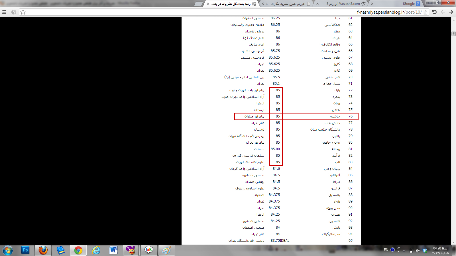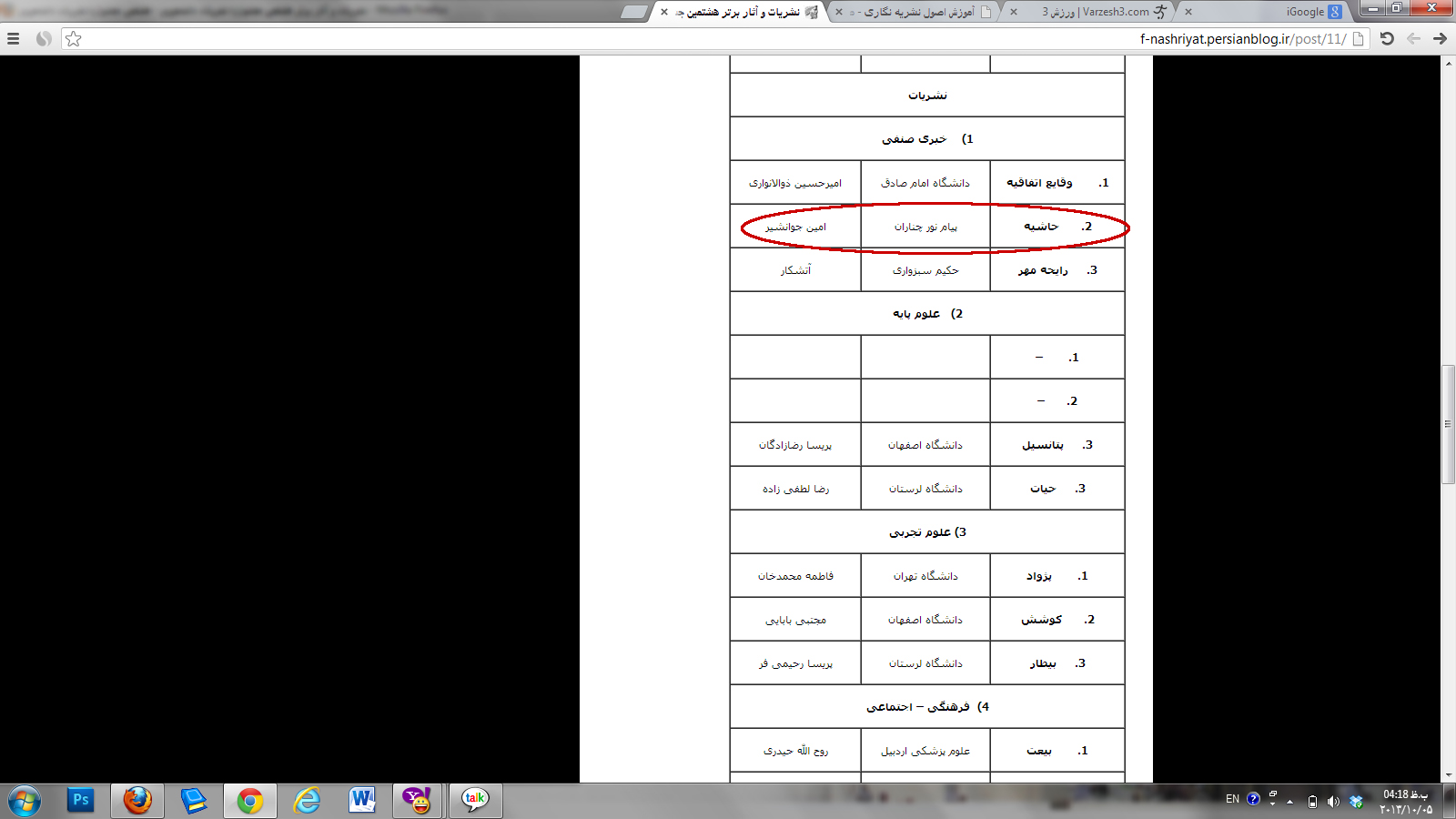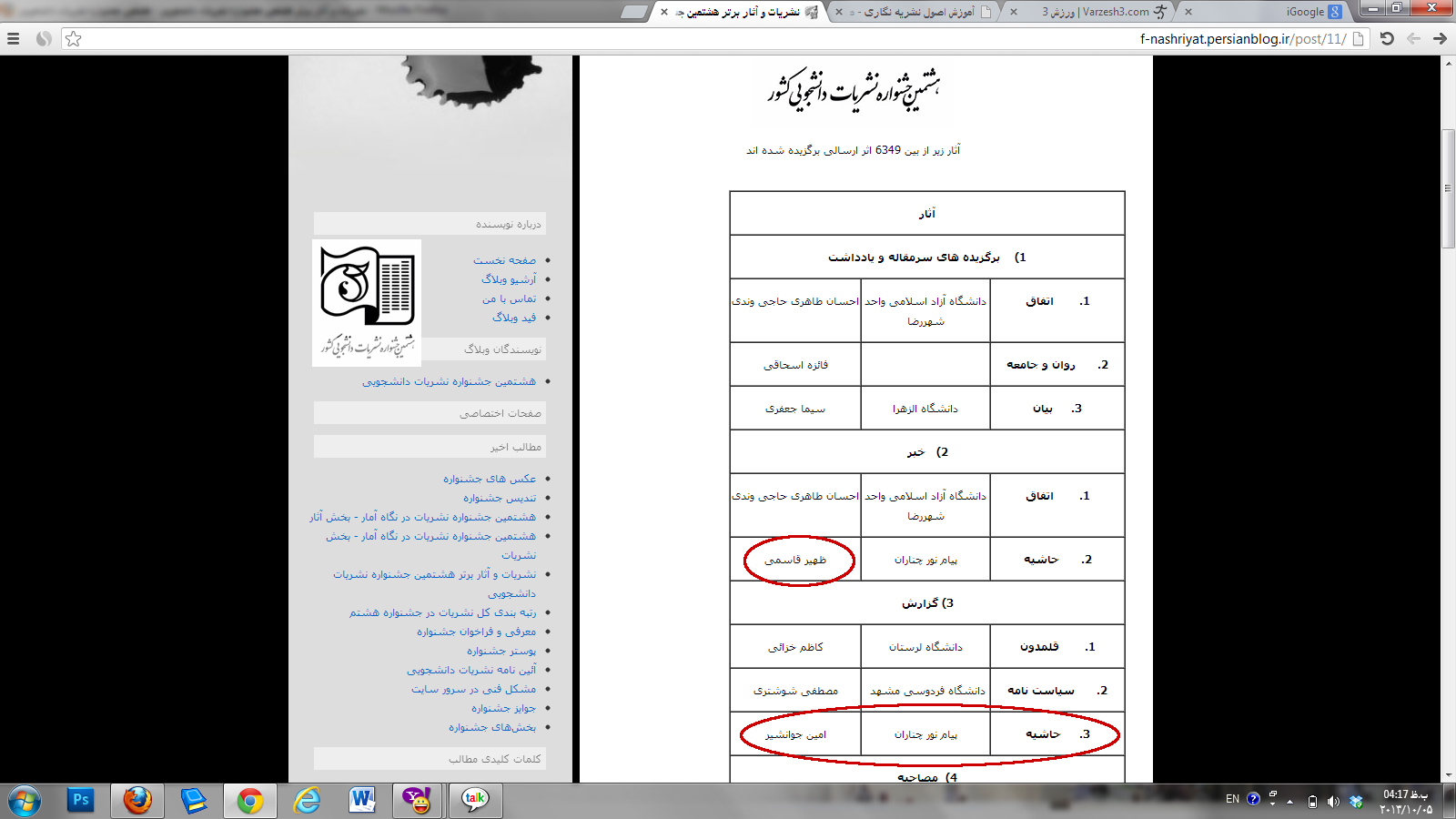 این ها نتایجی بود که اعلام شد. جای ابهام داشت. تماس که میگیرم همه چیز روشن میشود. نشریه حاشیه در بین نزدیک به 2000 نشریه رتبه 76 را کسب میکند و آن نشریه شماره 13، اسفند 90 است. میگوید خبری صنفی هم همین بوده، اما بعید میدانم و بنا را میگذارم بر اینکه بین دو شماره تقسیم شود.